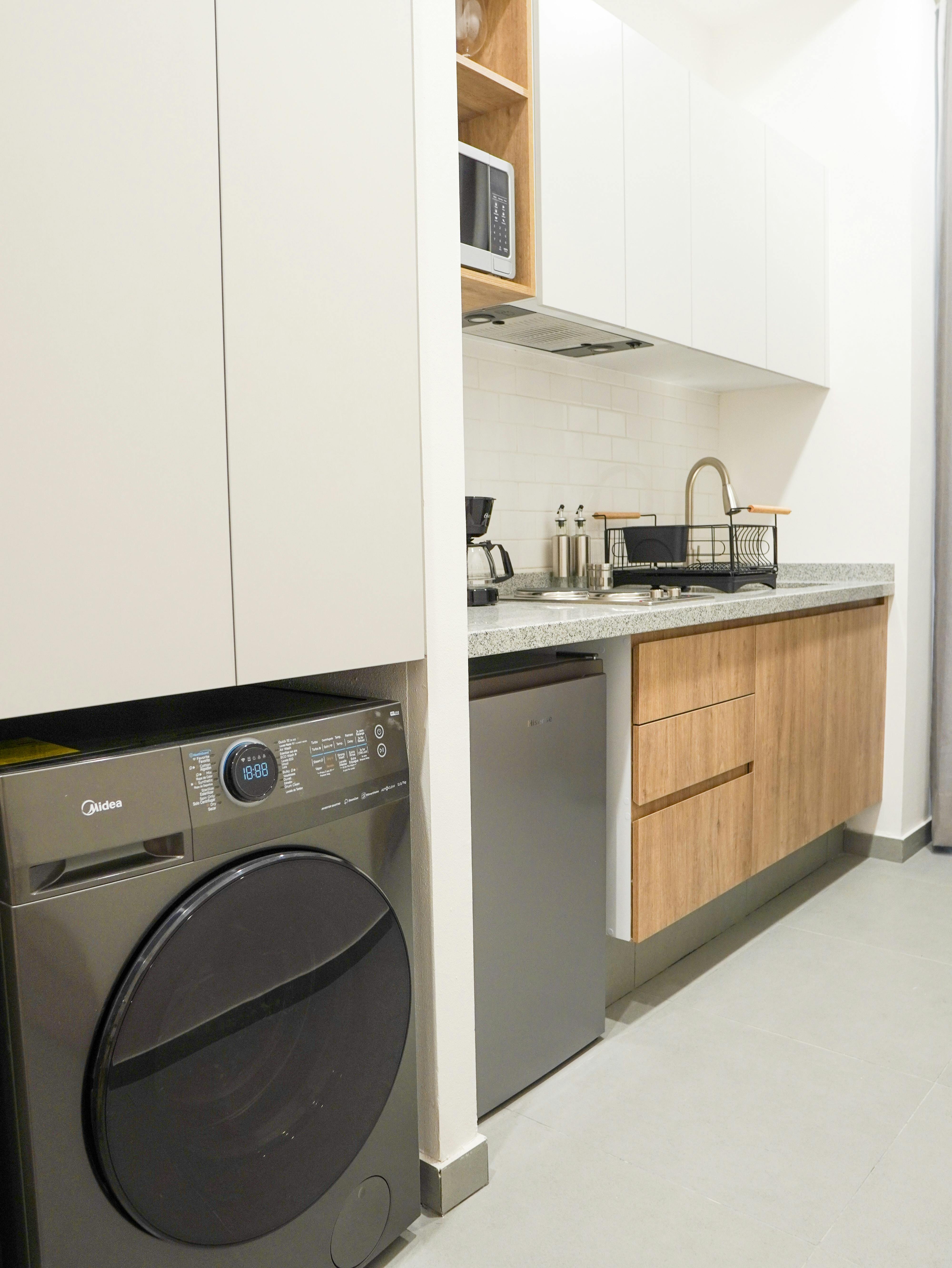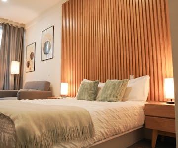 The cozy studio provides a comfortable and well-equipped space for relaxation. It features amenities such as a small desk, free Wi-Fi for remote work, a Queen-size bed, a double sofa bed, and a small balcony. The fully equipped bathroom and kitchen add convenience, including a washer-dryer for laundry needs. Guests can enjoy morning coffee or tea and relax with a complimentary movie in this inviting space.